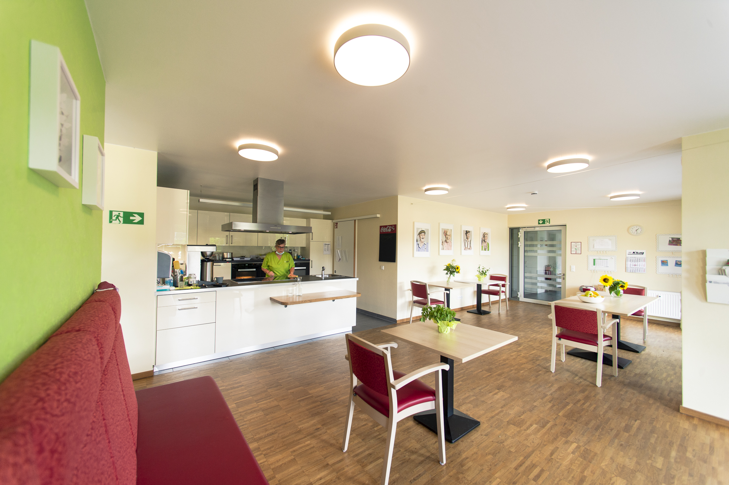 Der großzügige, lichtdurchflutete Raum ist Dreh- und Angelpunkt für die Gäste in der Tagespflege. Mit liebevoll renovierten Räumen in verschiedenen Farbtönen gibt es hier einen Ort zum Wohlfühlen für Senioren. Die Einrichtung ist Montag bis Freitag von 7.30– 17.00 Uhr (Feiertage ausgenommen) geöffnet.