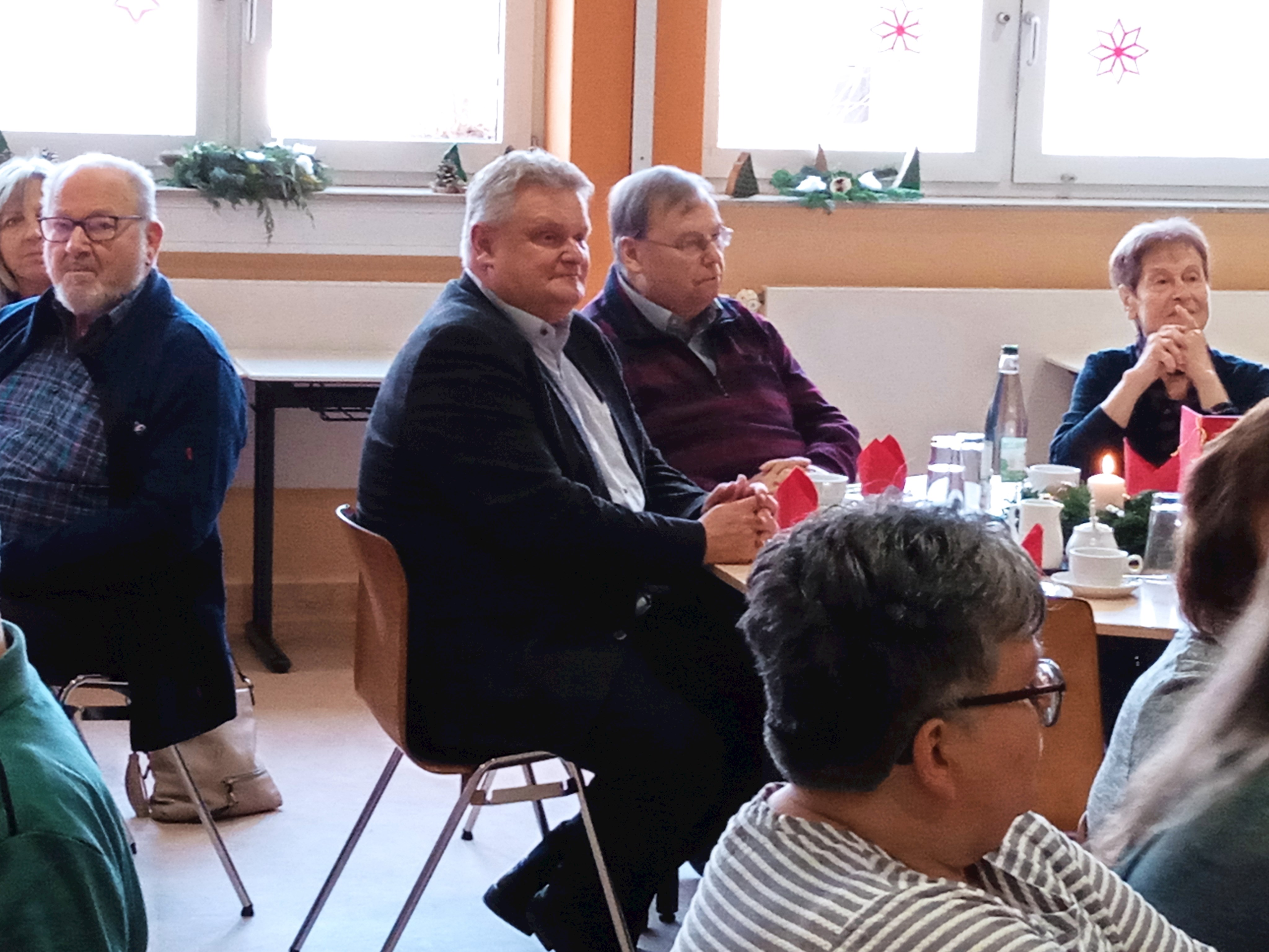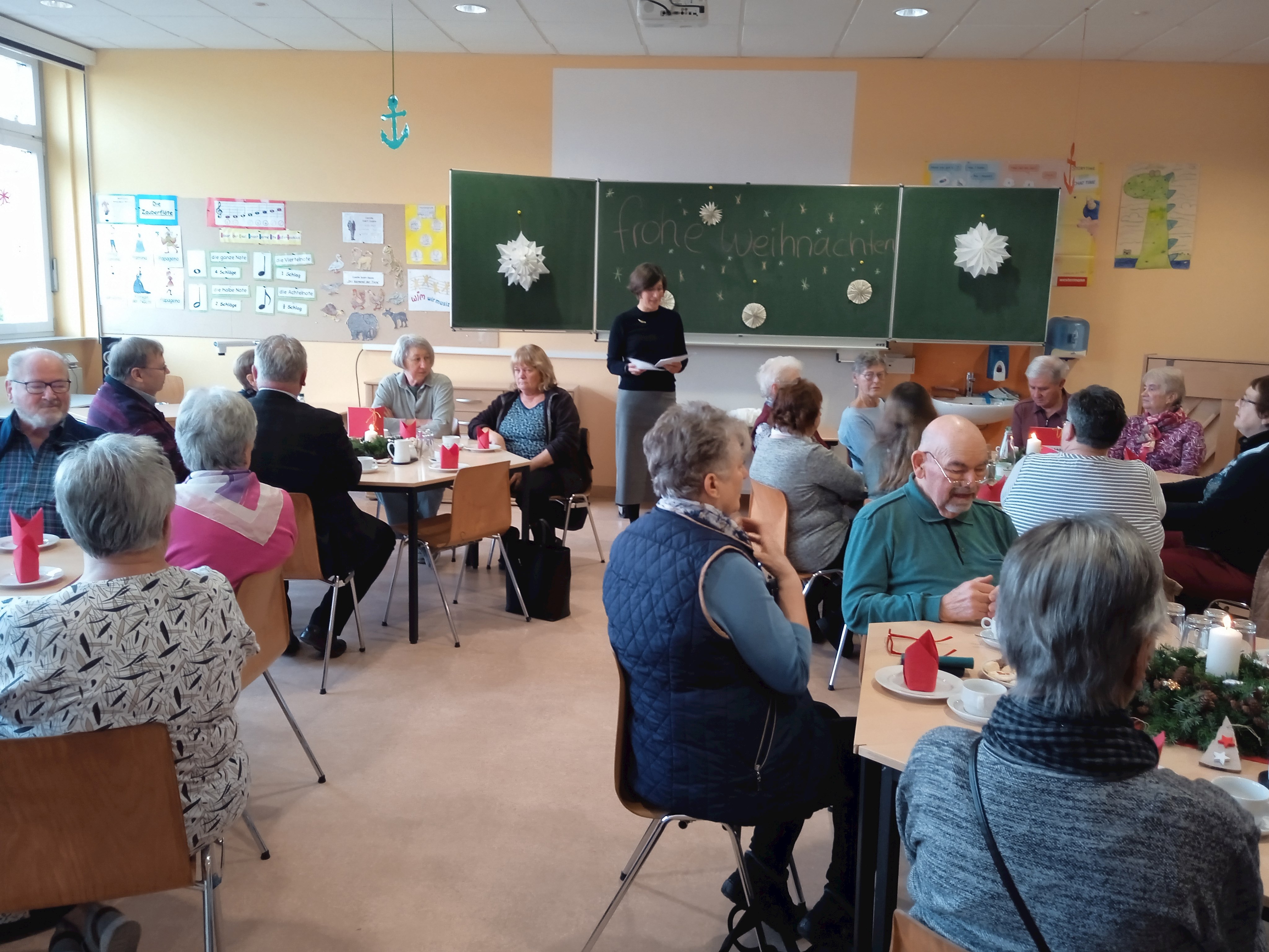 Um 10.00 Uhr hatten sich etwa 25 Seniorinnen und Senioren, Pfarrer Monsignore Leipold und der 1. Bürgermeister Gerhard Rüth im Musikraum der Schule eingefunden und wurden von der Schulleitung Katrin Arnold herzlich begrüßt.
