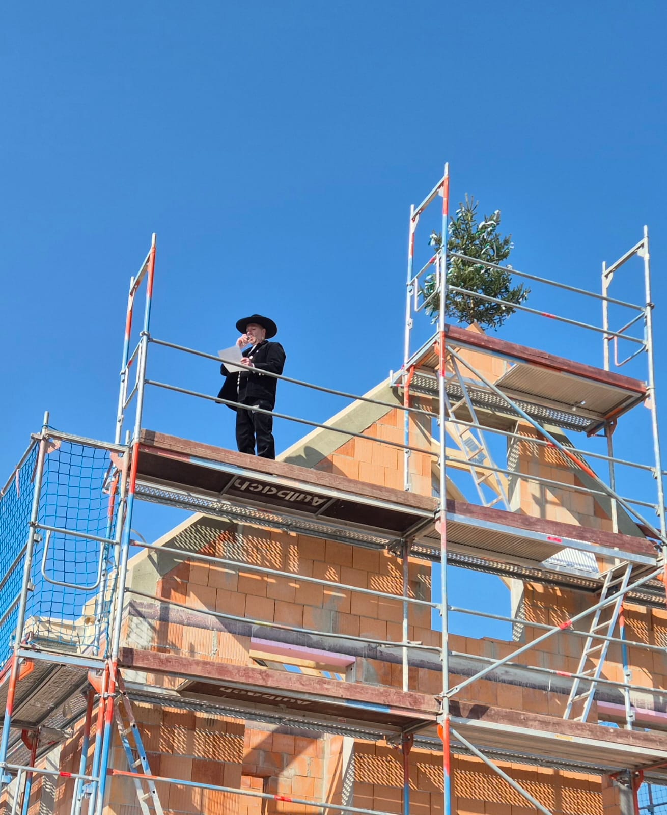 Nur knapp fünf Monate nach dem Spatenstich im Oktober 2023 wurde am Areal Kreuzgasse in Eschau Richtfest gefeiert. Dort entstehen sechs Einfamilienhäuser. Den Richtspruch sprach Zimmerermeister Nico Trautwein von der Zimmerei Krug aus Stadtlauringen. Die Häuser werden von der Deutschen Bauwelten GmbH, Isernhagen und dem Nachunternehmer Konzepthaus GmbH aus Eschau errichtet. Die Fertigstellung der Häuser ist bis Herbst 2024 geplant.