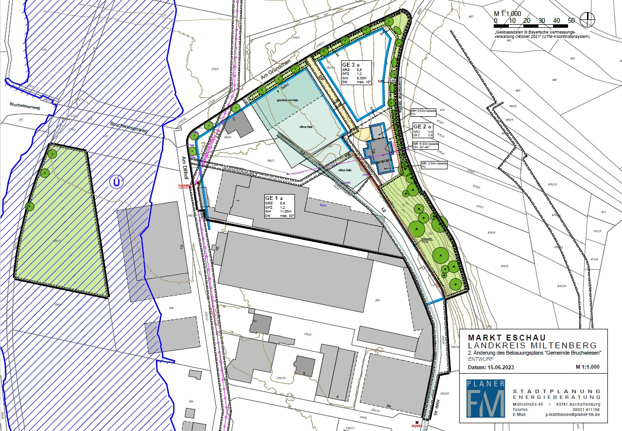 Diese Bekanntmachung ist zusätzlich im Internet auf dem zentralen Landesportal für die Bauleitplanung Bayern www.bauleitplanung.bayern.de und auf der Homepage des Marktes Eschau www.eschau.de in der Rubrik „Wirtschaft, Planen und Bauen“ - Aktuelle Bauleitplanverfahren – Änderung Bebauungsplan „Gemeinde Bruchwiesen“ Hobbach eingestellt (§ 4 a Abs. 4 Satz 1 BauGB); zusätzlich ist die Planung (Bebauungsplan-Entwurf mit Begründung vom 15.06.2023 einschließlich der im Inhalts- bzw. Anlagenverzeichnis aufgeführten Anlagen) veröffentlicht.